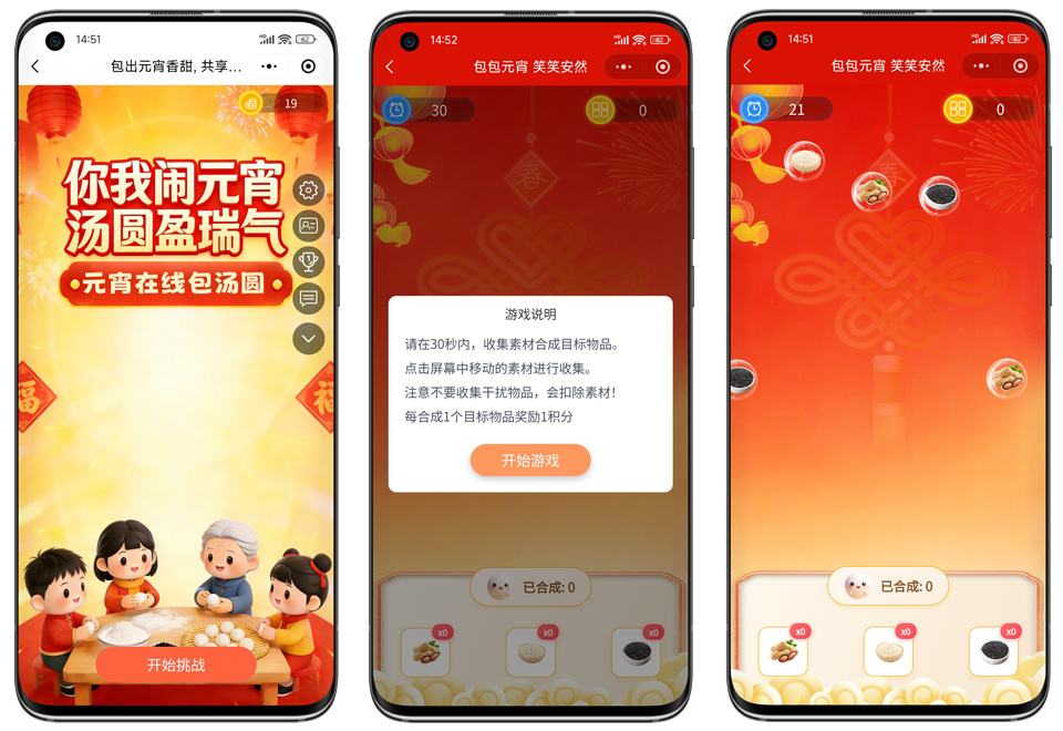 当三种元素集齐,指尖下的屏幕瞬间“合成”一个活灵活现的汤圆。那一刻,不仅是游戏的通关,更像是完成了一次对传统的致敬。通过合成汤圆积累积分,还能兑换我们准备的暖心好礼。这不仅是一场游戏,更是一次跨越时空的“回家”。无论你身在何方,只要有网,就能与远方的亲人发起挑战,比比谁合成的汤圆多,让欢声笑语在云端流动。