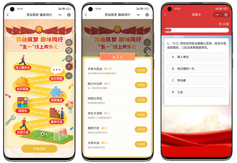 本次活动旨在通过数字化手段,丰富职工五一假期生活,在缓解工作压力的同时,弘扬新时代劳动精神。活动不仅局限于娱乐,更融合了党建知识、劳动法规普及与健身运动,旨在增强职工的归属感与团队凝聚力,助力企业与单位文化建设,扩大工会活动的影响力。